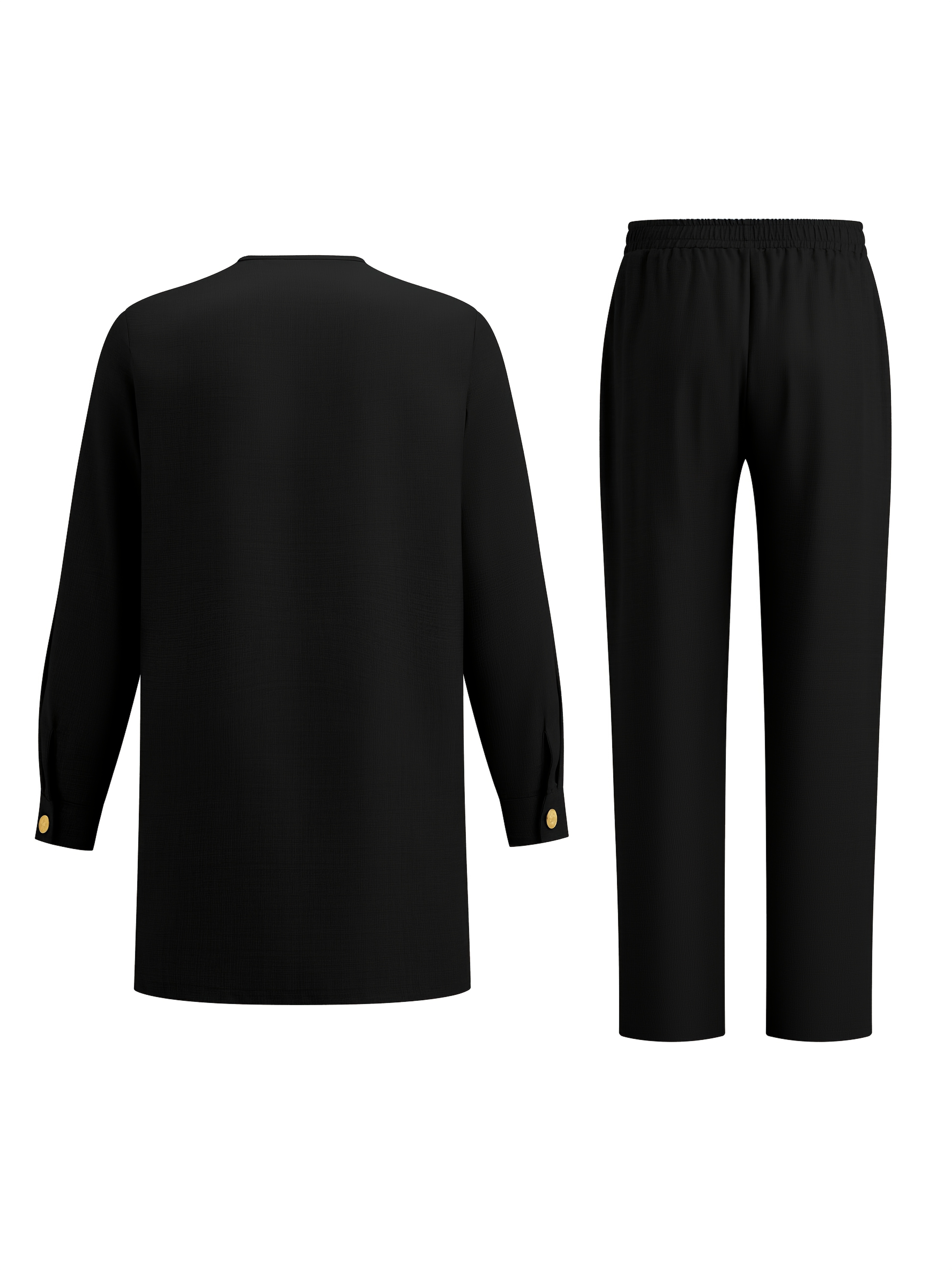 Men's Casual Long-sleeved Two-piece Suit Mid-length Top And Trousers