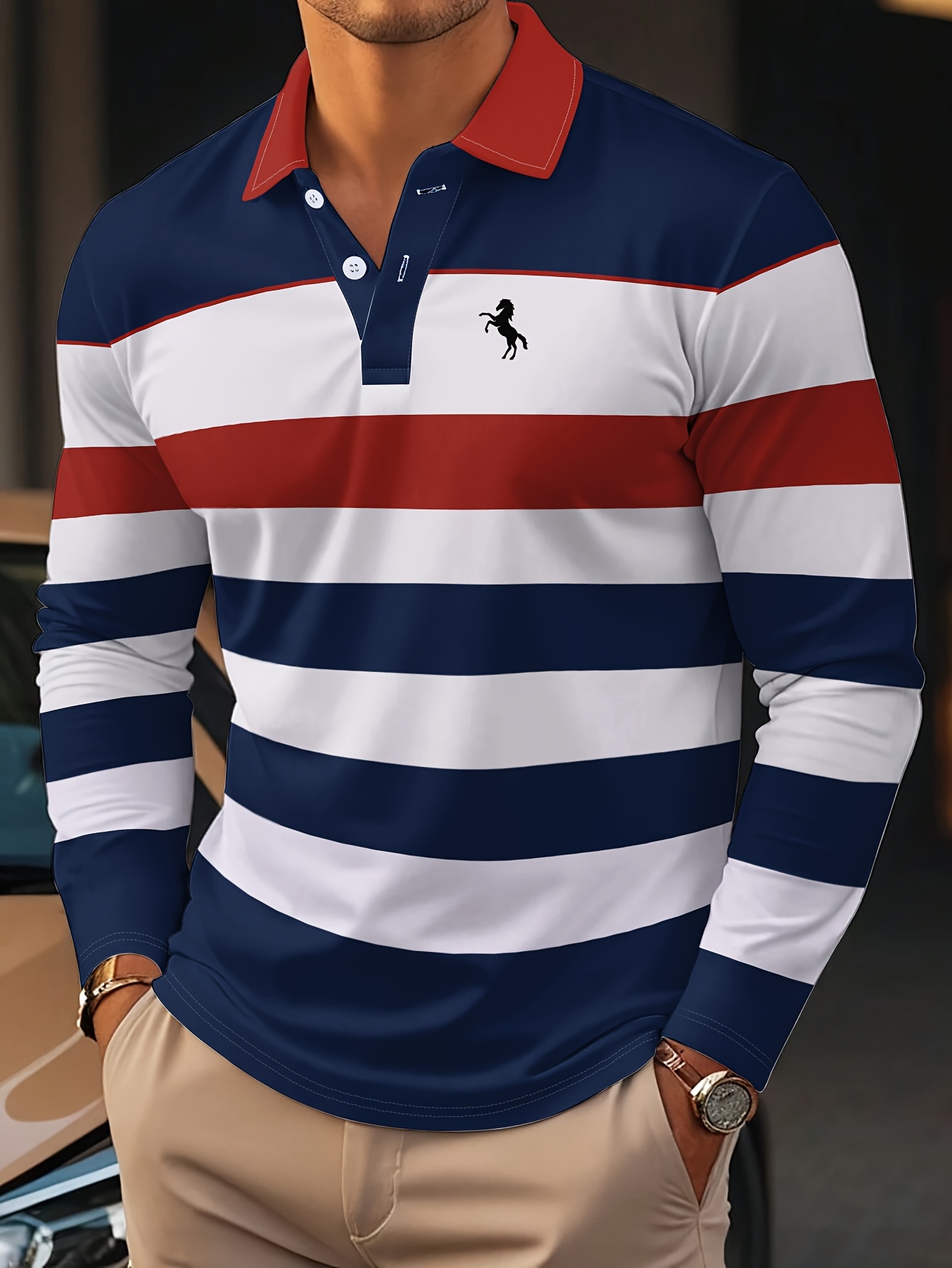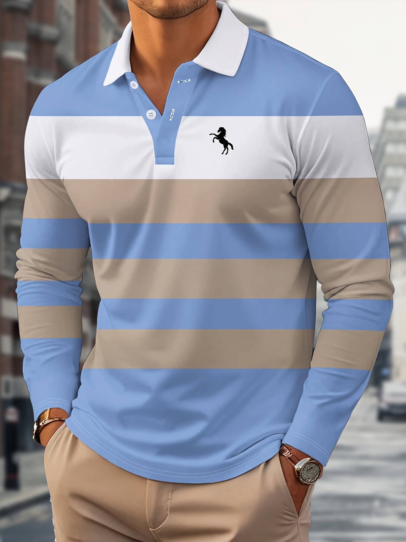 Yang Siyao's Selection 3D Digital Print Color Stripe Men's Casual Comfortable Long Sleeve Shirt